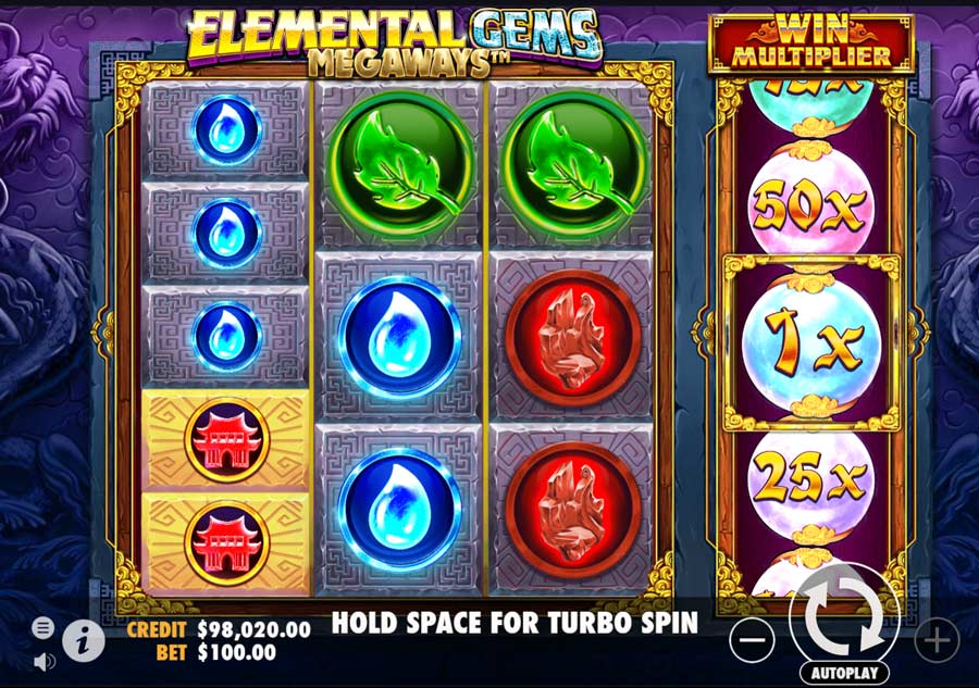 Secondly, Elemental Megaways has a medium variance. Therefore, expect consistent and reasonable wins with a few dead spins. You can win up to a maximum of 5000 times your stake. Here is a breakdown of the Elemental Gems Megaways Slot Features: