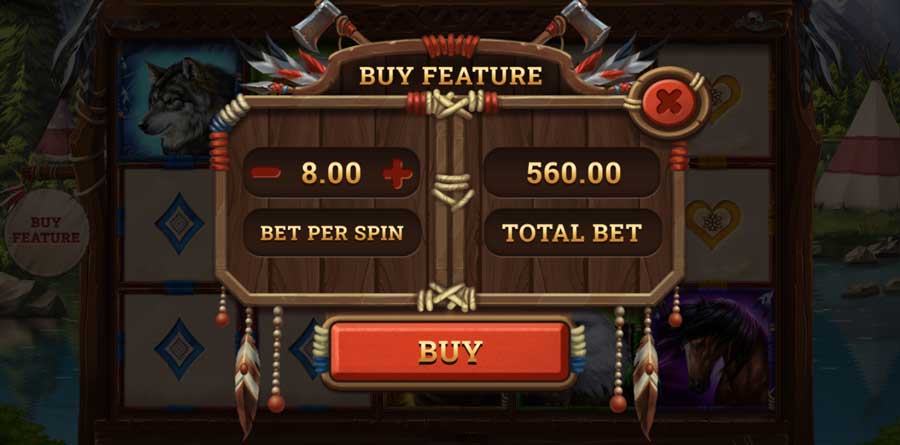 Buying bonuses is now popular with slot games. In fact, it is one of the features of the Spirit of the Beast slot game. Players in this game get an opportunity to acquire an explosive bonus round. The player does so by clicking on the buy feature button on the screen. From there, you can purchase free spins at the cost of 70x the original bets. Consequently, with this purchase, the player earns a free spin with at every three scatters.